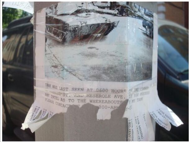 To attract people’s attention and make them dial the number of a sex hot line, they put this strange and unusual flier which stated that a TANK was lost somewhere in Brooklyn and people were asked to contact the ARMY if they had any information about its whereabouts. Clickable.