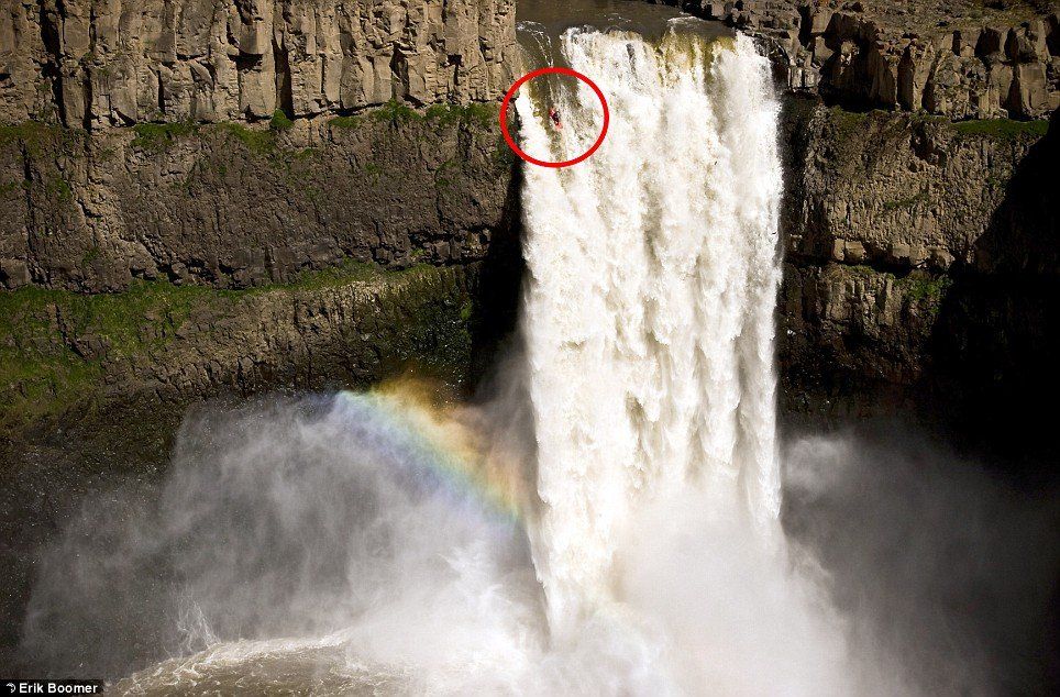 Kayaker Tyler Bradt has set a new world record by paddling over the 186ft Palouse Falls in Washington State. Clickable.